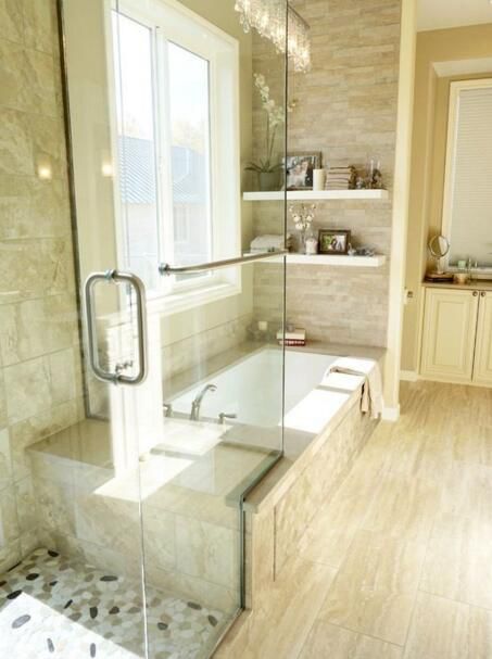 如果你 家裝 了浴缸(浴缸裝修效果圖),那就在浴缸貼著的墻面上,設計幾個層板架吧!溫馨又實用。