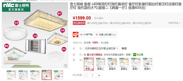 臥室三件套 價值1599元的雷士燈免費搬回家