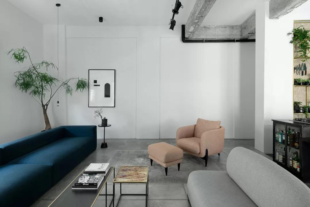 完成的平衡包括更新的混凝土地板和天花板上的原始混凝土細節(jié)。白色表面與黑色元素混合,形成現(xiàn)代對比效果。