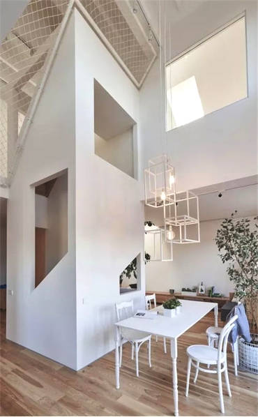 整個房屋的室內設計以白色為主,充滿各種體塊設計。