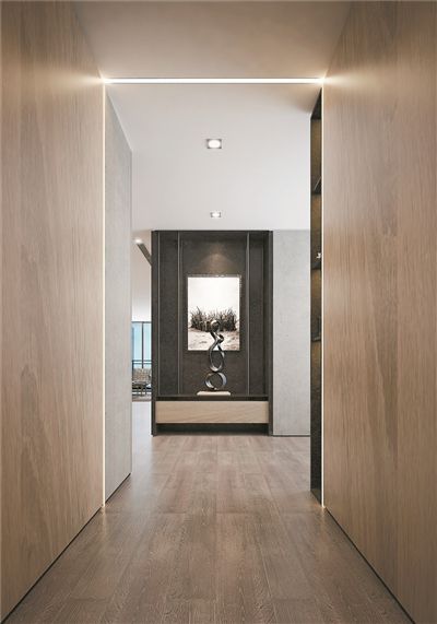 設計師把錦榕灣的三房入戶玄關變成時光隧道,業主從忙碌的都市踏進溫暖的家里,從時光隧道開始就可以轉換心情。三個空間打通后,使得客廳空間超大。對于中國人的廚房,很多人都表示開放式廚房不適合國人,因為無法去除中式烹調的油煙。楊才鑫認為,業主工作忙碌,下廚的時間本來就很少,沒時間做復雜的菜肴,餐廳和客廳都是用來招呼朋友之用,因此廚房的烹調功能已非常弱化。