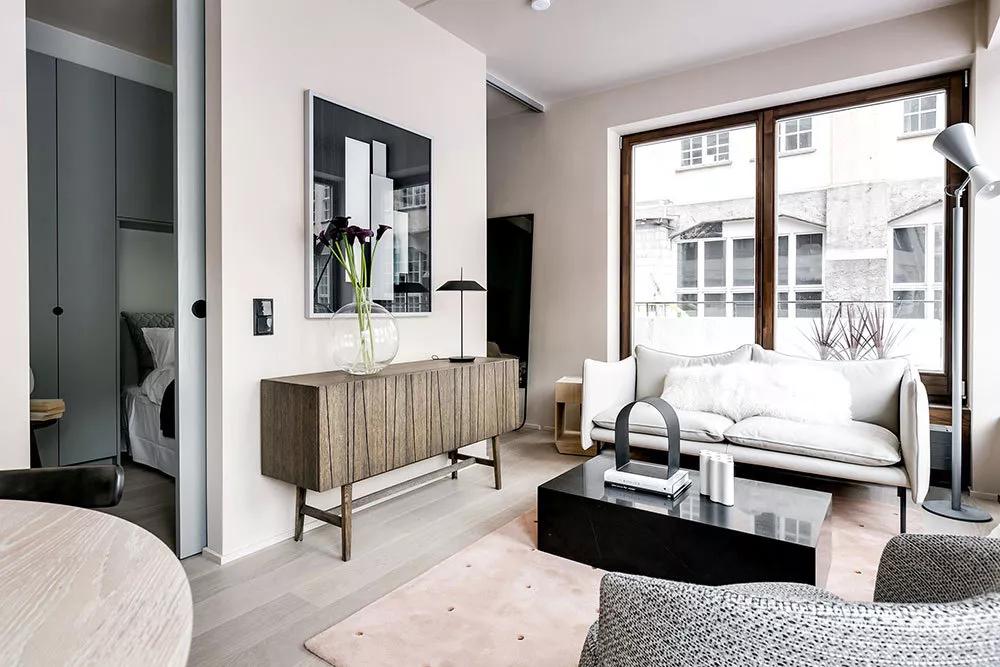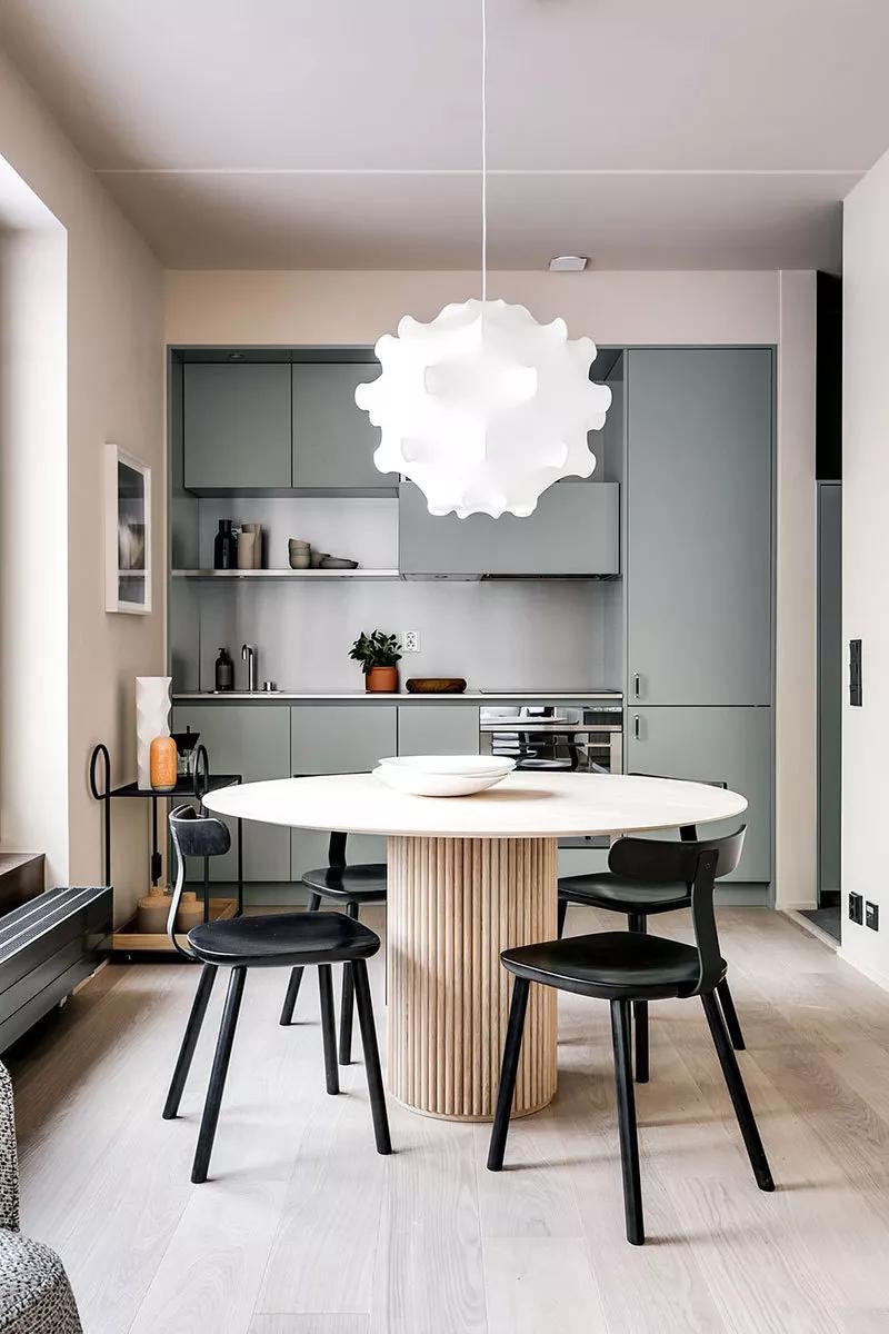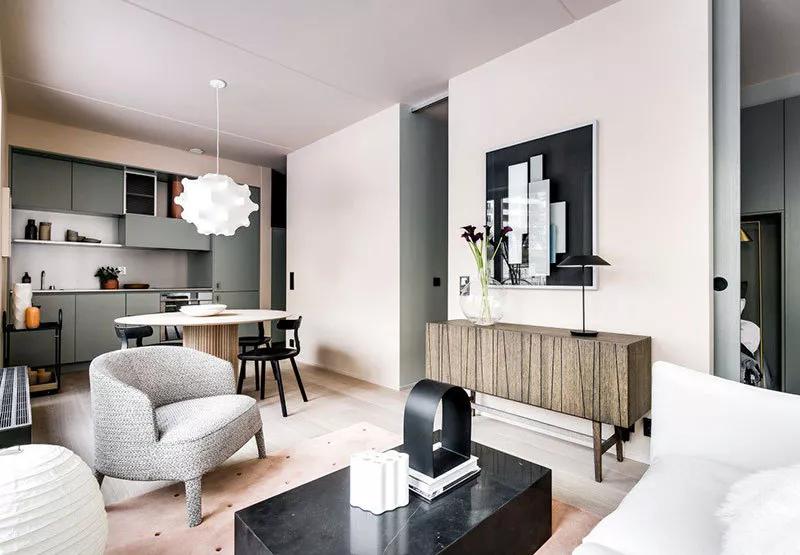 斯德哥爾摩這間公寓的總面積非常小,但家里有著充足的窗戶。即使在獨立的小臥室里,也有一扇窗戶。這個空間看起來非常明亮,并且日光充足地充滿了整個房間,這也并不奇怪。我們很喜歡設計師對配色選擇 - 在這里我們將復雜的柔和色調完美結合。對于學生或年輕夫婦來說,這是一個很好的選擇!