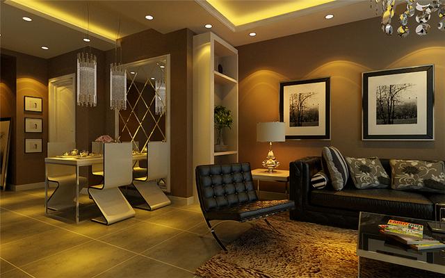 對于現代風格,時尚是其不可或缺的元素,但體現內涵更為重要。本案重點對于電視背景與墻的裝飾處理,使進門處本已縱深感很強的客廳,增加了橫向的延伸感,詮釋了空間的層次,使視覺更加充盈豐滿。