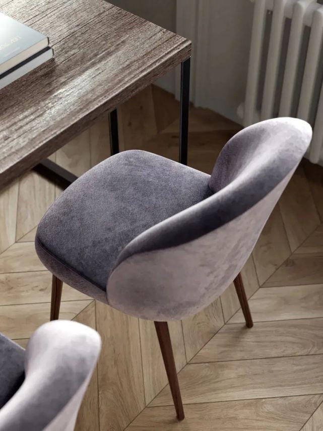 絲絨椅子做極溫柔的訴說,化解了層高和高貴雕花頂角線帶來的冷峻距離。