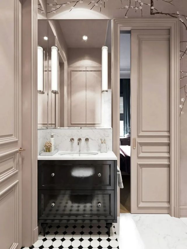 主衛干區延續了臥室的配色比例,黑與白的加入,方寸之間盡顯潔凈明亮。