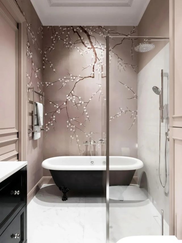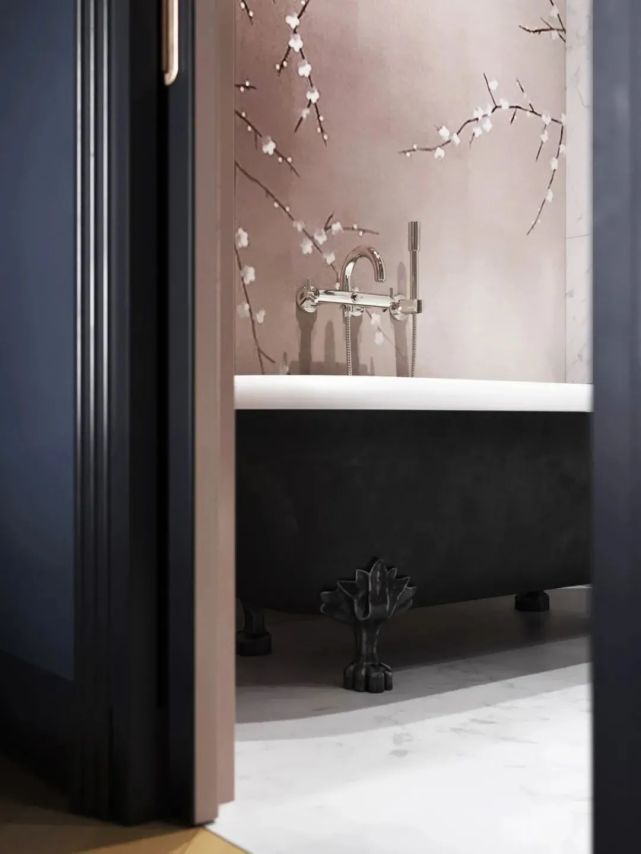 舒適的獨立浴缸映襯著墻繪寫實花樹,沐浴的同時,享受置身自然之美。