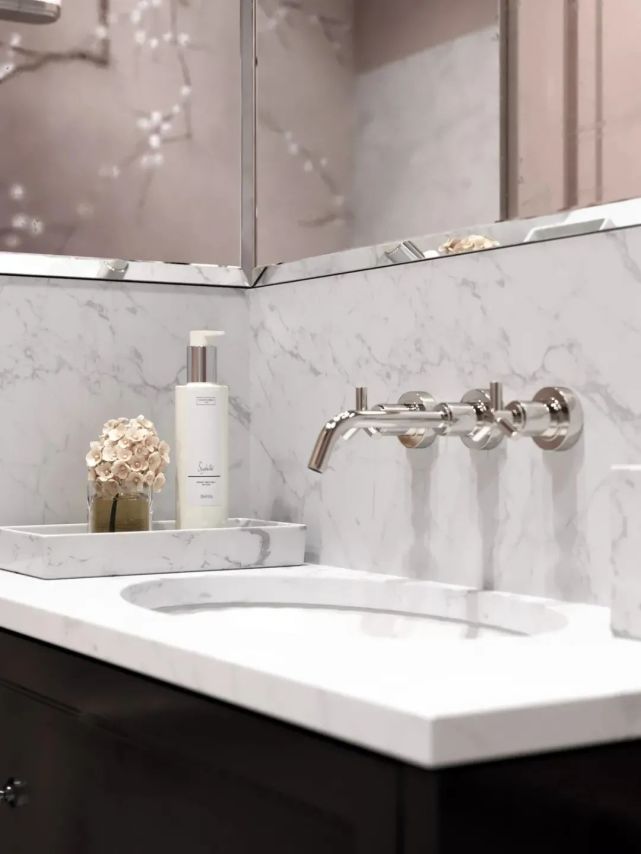 濕區以淡粉為底,大理石紋的加入讓空間更有質感。