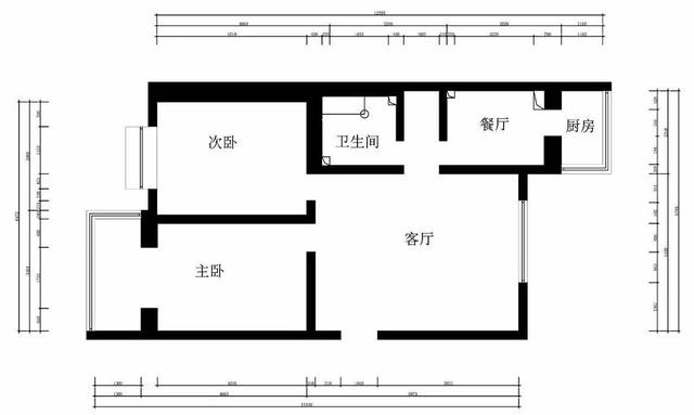 承重墻里面有鋼筋,承當房屋的主要承重任務。是否是承重墻,可以通過圖紙來判斷——如下圖中的圖紙,線條比較粗的墻壁,就是承重墻▼