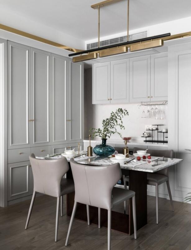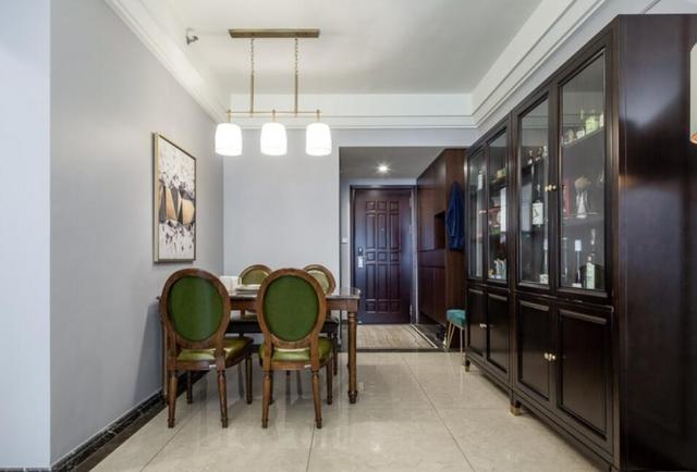也許有些人覺得在餐桌旁邊做一個柜子不太實用,但實際我們入住的越久就會發(fā)現(xiàn)家里的東西越多。這個時候家里的其他收納柜無法存放,就要用到其他收納空間了。而且餐廳的位置大多跟客廳離得比較近,平時拿取物品會比較方便。