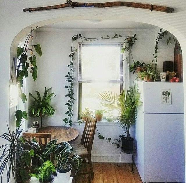 如果操作正確,即使是最小的廚房也可以裝滿綠色植物。在這個工業(yè)風(fēng)格的小廚房里,你很難錯過所有的綠色植物。