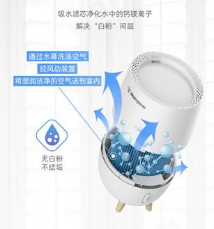 西屋加濕器WHE-2580的吸水濾芯除了針對細菌病菌,還能去除水中鈣鎂離子。鈣鎂離子是水中的金屬物質,一般加濕器在使用過程中沒有凈化功能導致鈣鎂離子經過霧化釋放,即我們常說的加濕白粉。超標的鈣鎂離子不但會凝垢在加濕器的霧化片影響機器的使用壽命,還會因空氣流動吸入人體造成呼吸系統。