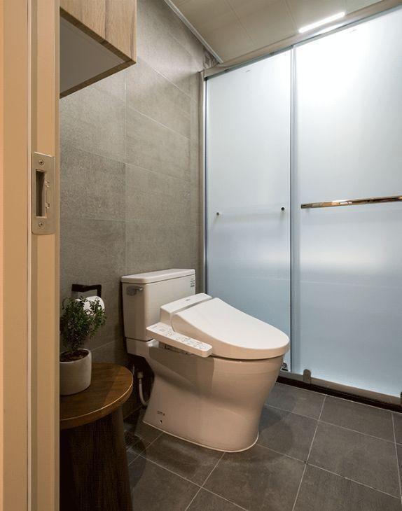 從水龍頭這些五金細節(jié),很細致的體現(xiàn)不將就的生活品味。浴室內(nèi)智能馬桶和干濕分離區(qū),角落還擺放一盆小盆栽,想想就讓人感到生活很愜意。