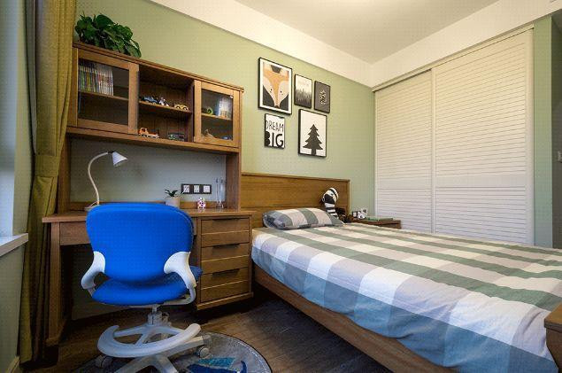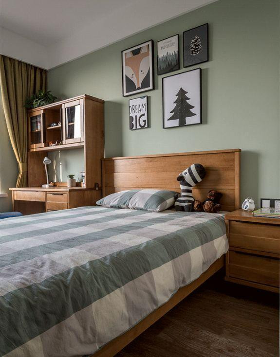 實木床和書桌這些原木色顯得各位的清新自然,搭配墻面淡綠色的乳膠漆,充滿活力。