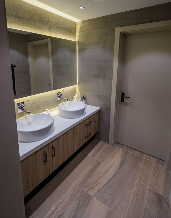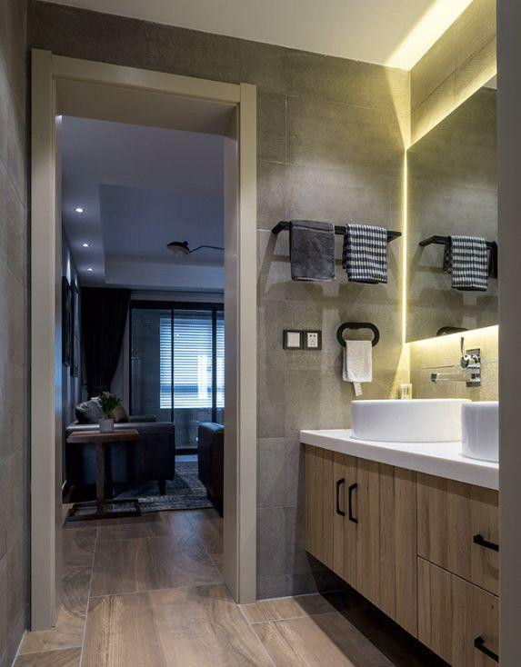 空間格外的寬敞,把洗手池移到浴室外面,然后還能安裝兩個洗手池,然后搭配鏡柜和燈光,給人一種酒店的快捷風格。