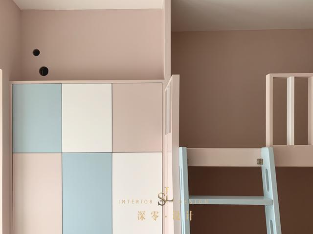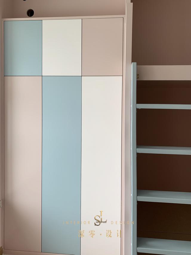 衣柜門做了拼色處理,與整體裝修風格相協調,也增加了幾分活潑,而不是簡單的用一種顏色,顯得那么死板,也能幫助孩子更好的進行分類。