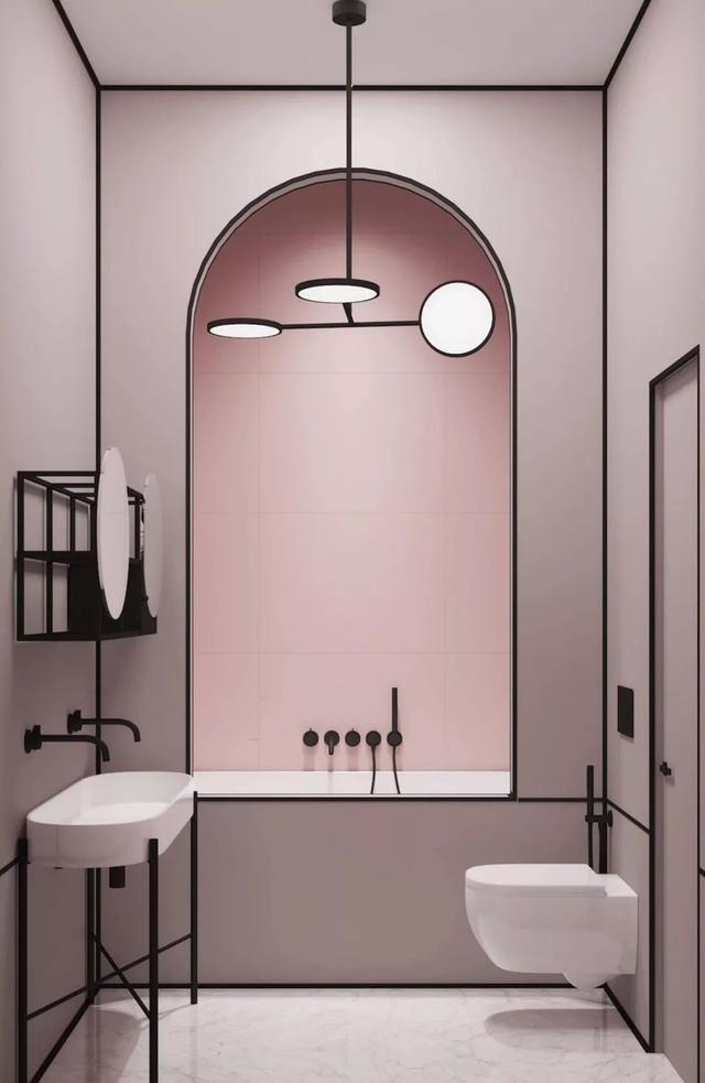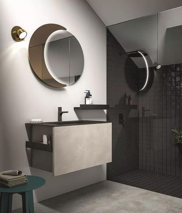 比如:你可以將洗臉臺(tái)和馬桶區(qū)設(shè)在一起,再打造一個(gè)帶有玻璃移門(mén)的弧形或鉆石形淋浴房,以便更好地利用空間。