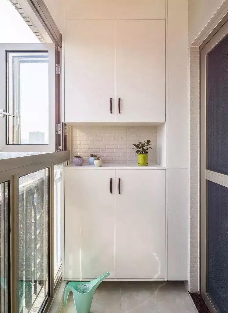 如果你比較喜歡養花草的話,那可以在柜子中間留空一部分,把你喜歡的盆栽放在留空那部分,陽臺也不顯得亂糟糟的。