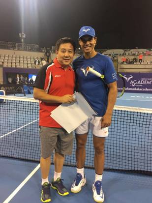 2017年,中網“慈善之夜”,張鈞與網球男單冠軍納達爾進行慈善表演賽
