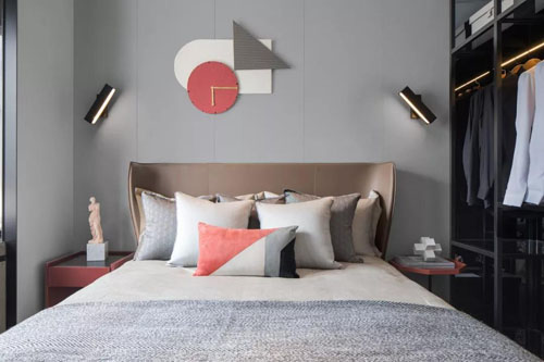 在深淺不一的灰調空間里,設計師巧妙的以珊瑚橙做為點綴,恰好有種深海的隱喻,色彩撞擊碰撞出新鮮活力,浪漫時髦的都市情調惹人心動。