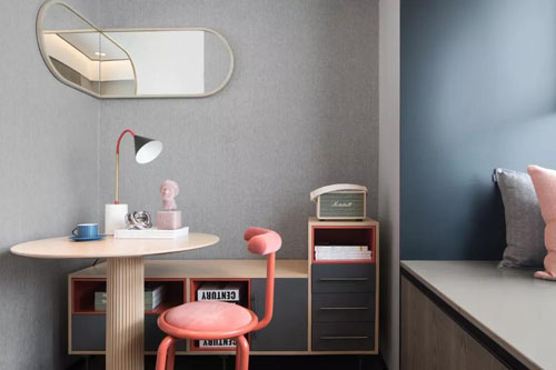 珊瑚色用于兒童房也是非常適合的,設計師通過不同比列的運用,讓每個空間都有它的氣質。